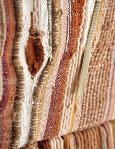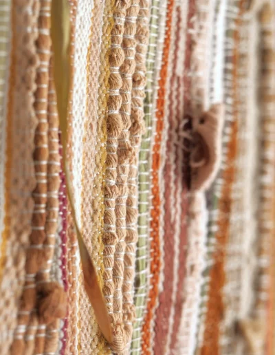 Johanna Fusco crée des œuvres textiles murales qui explorent la continuité organique du vivant.